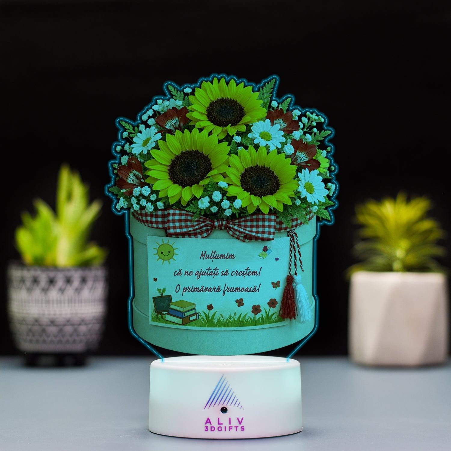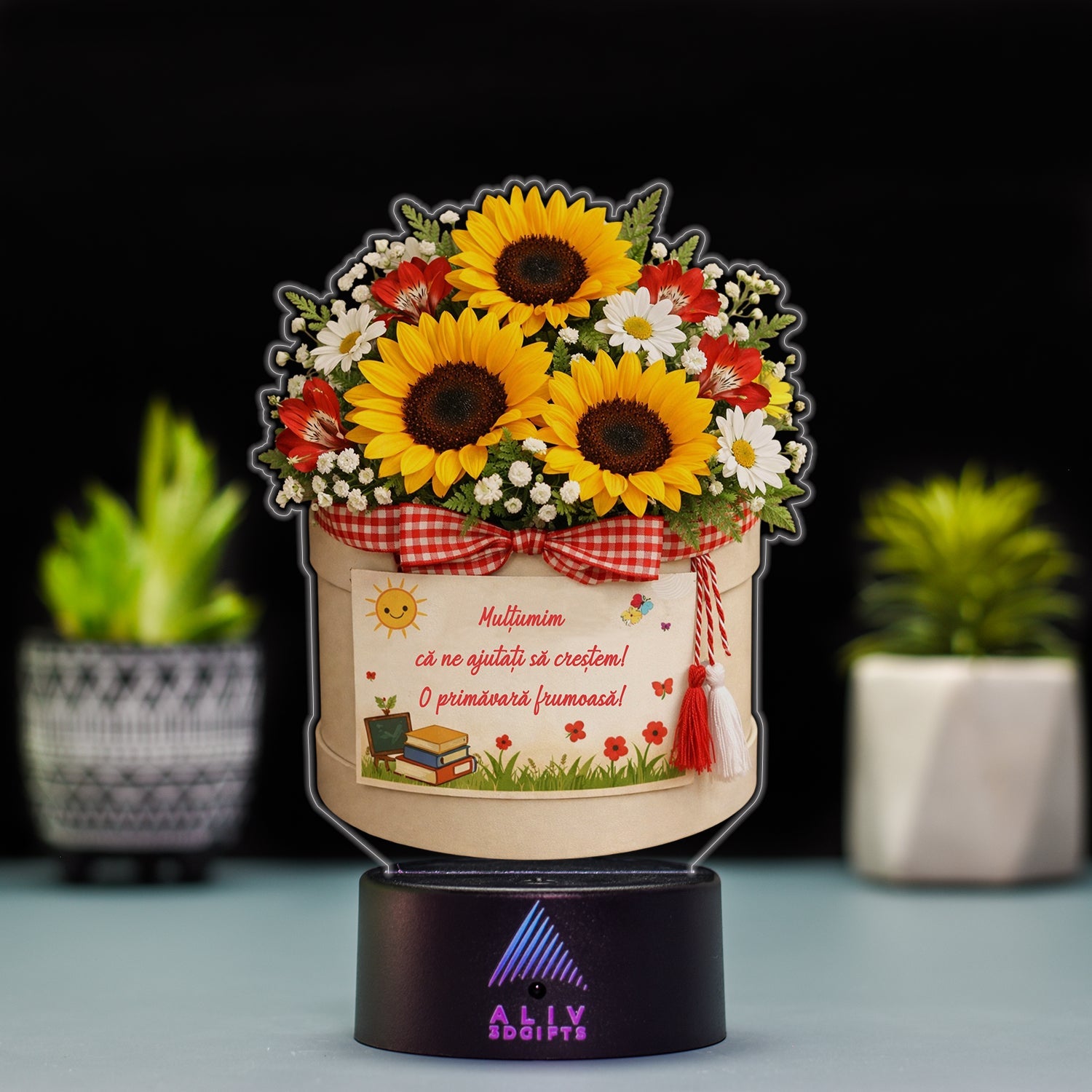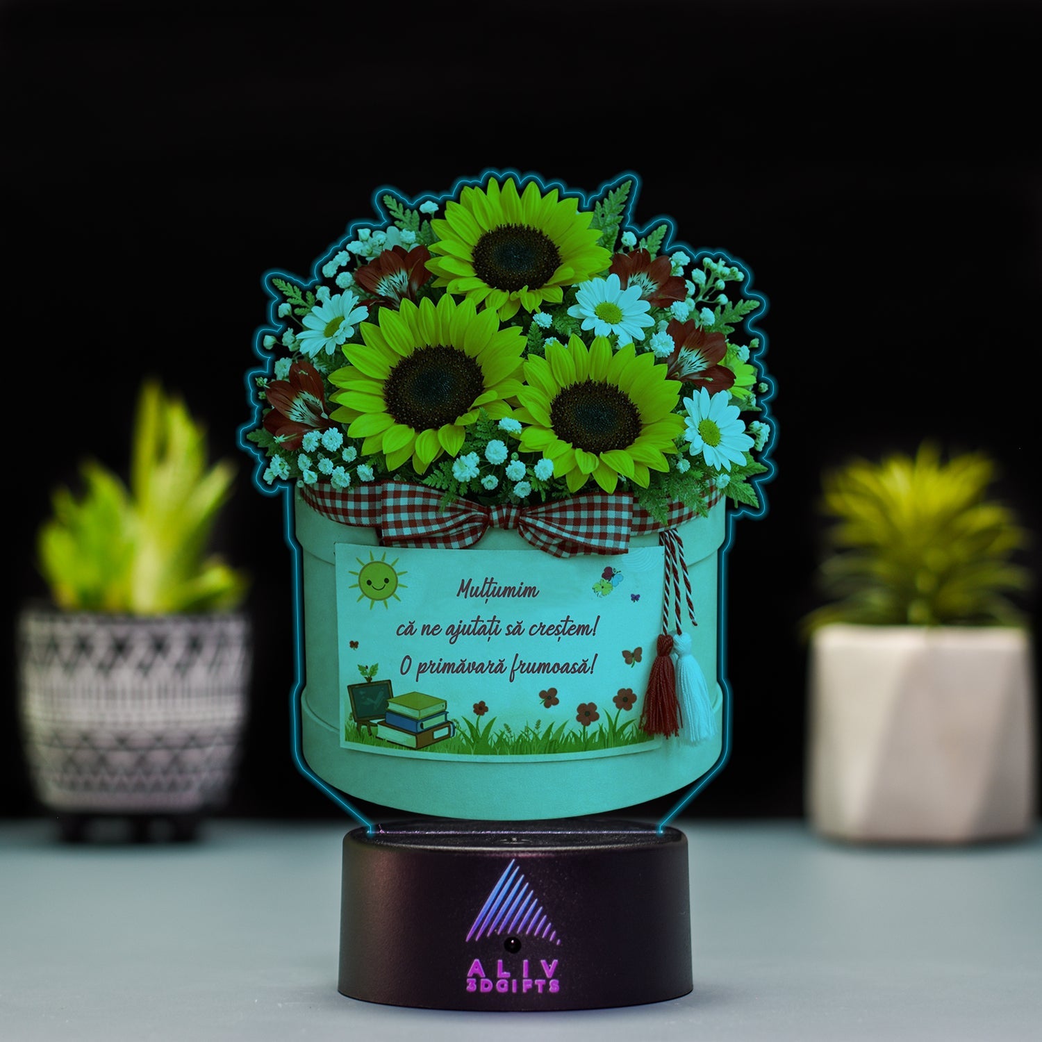 ✅Pachetul Include: Baza cu LED-uri, plachetă acrilică personalizată, cablu de alimentare și telecomandă (*varianta cu Boxa Bluetooth NU are telecomandă). |